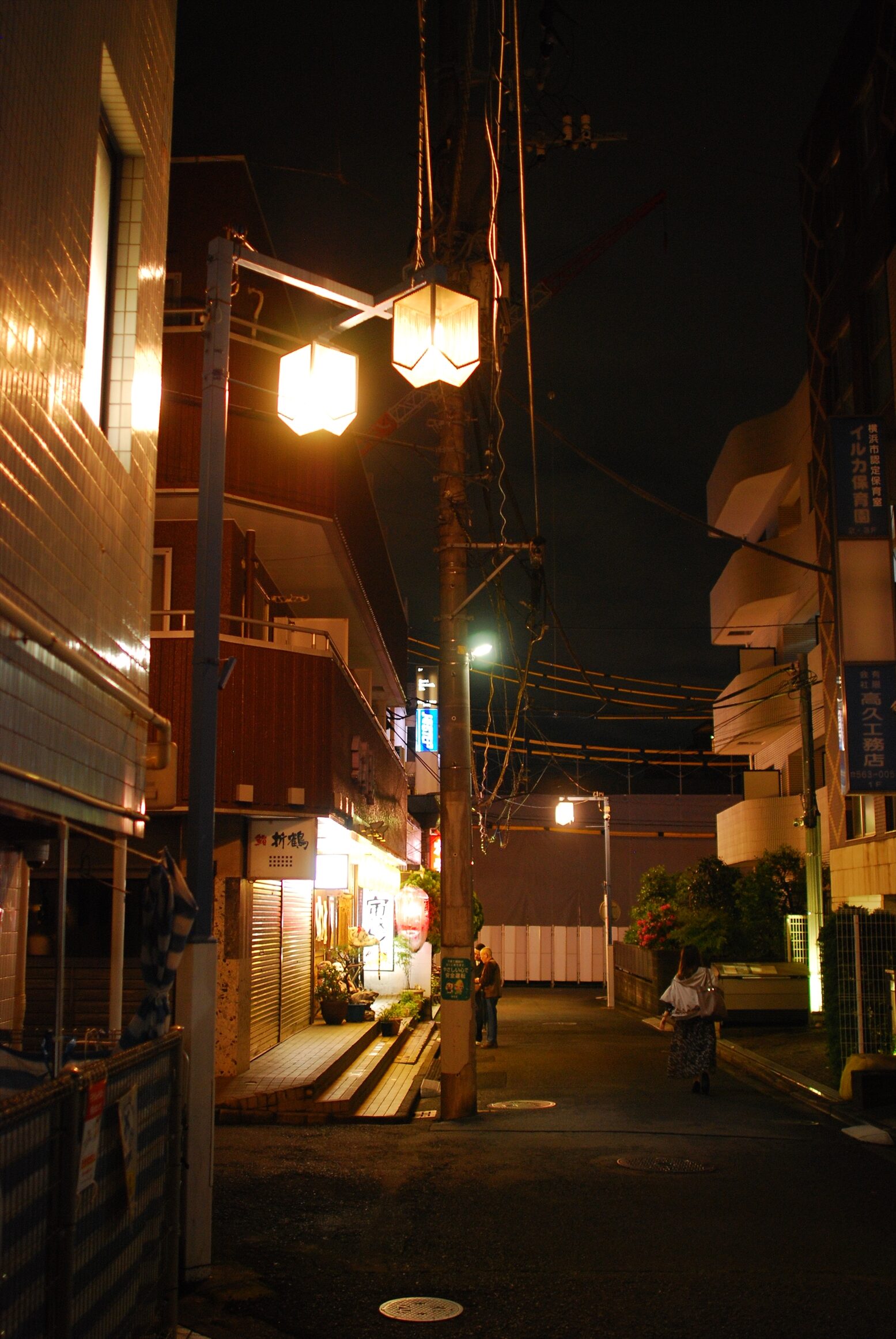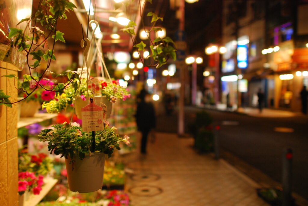 日吉中央通り。駅前を出て正面にある商店街でなかなか栄えている。AF-S 24mm F1.4GはAPS-Cで用いると換算36mmだが、最短撮影距離が25cmと短いためそこそこボケを作れる。