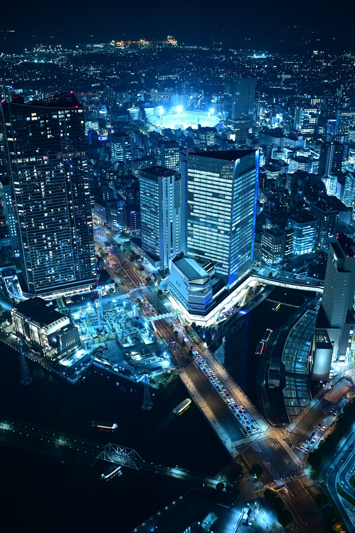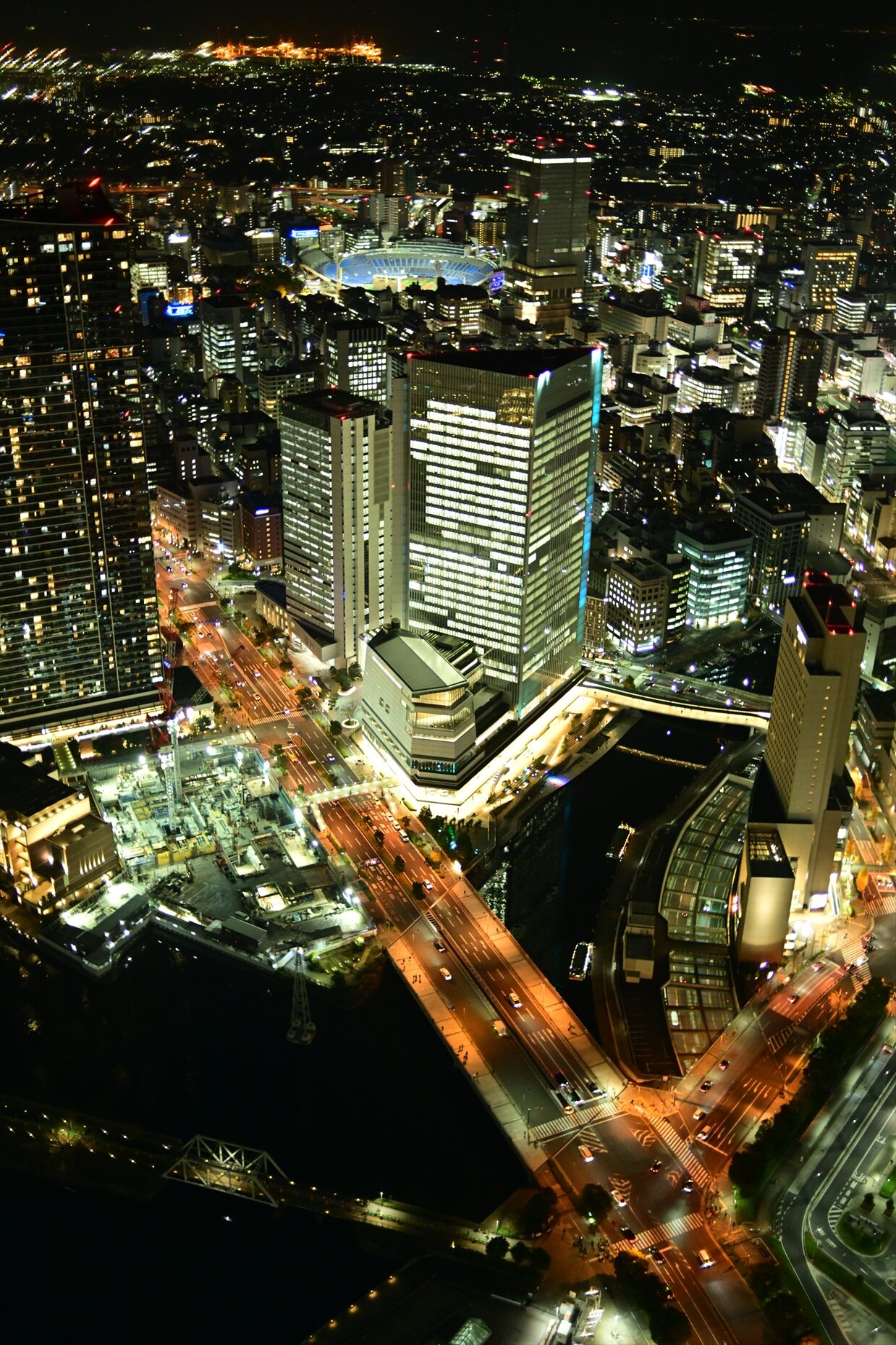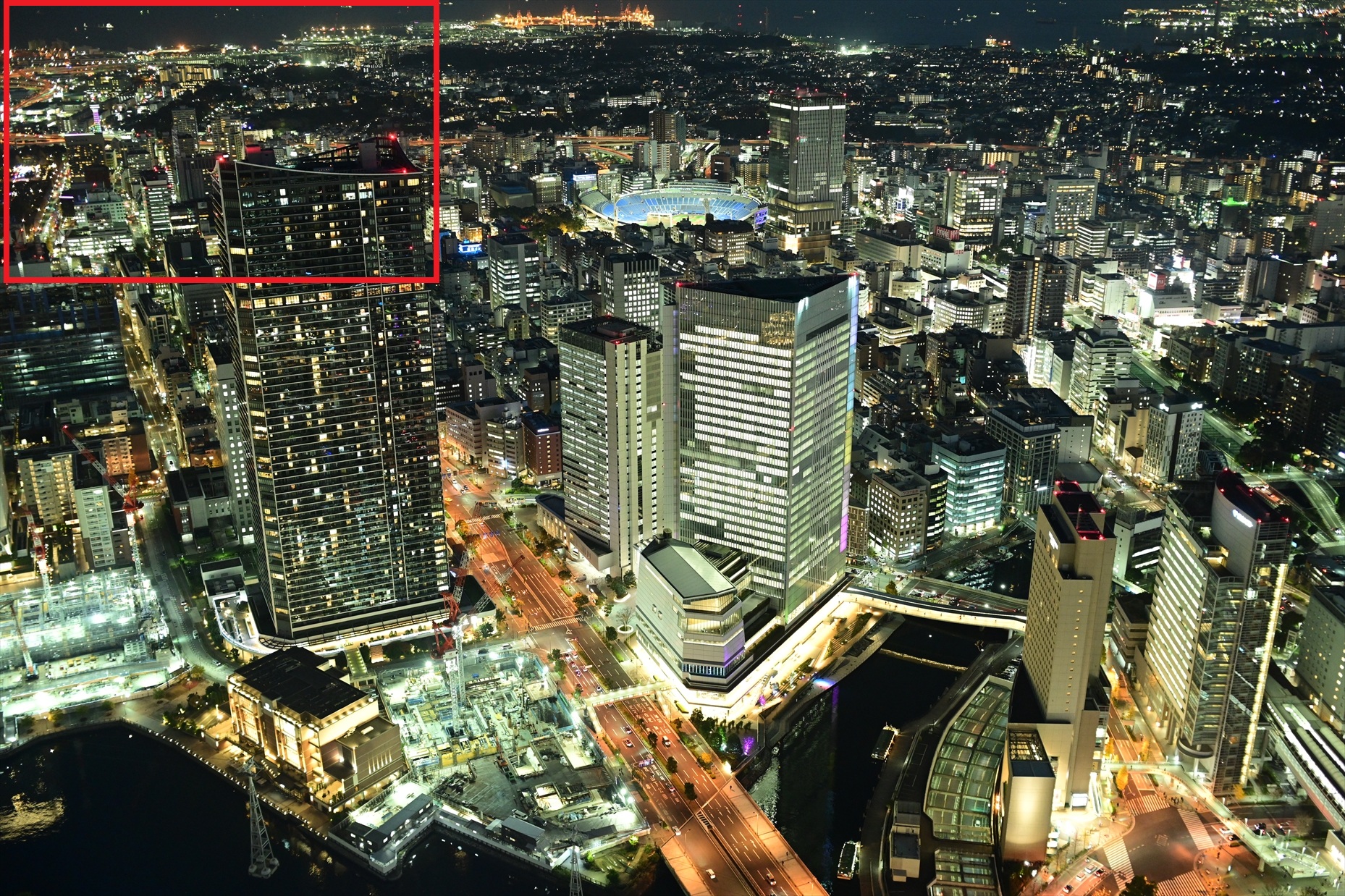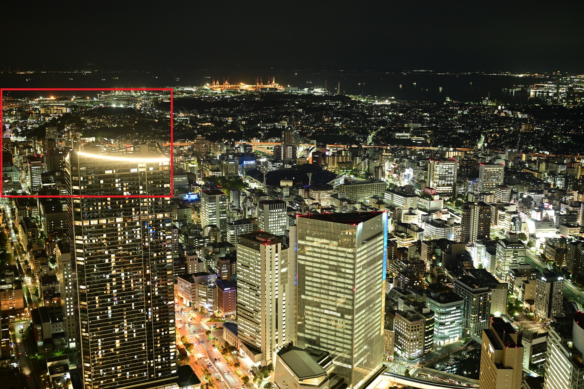 日が暮れたタイミングで一周したところ。前回シグマ40mm F1.4で撮った時と同様、ISO2500、絞り1.4くらいで撮っている。横浜市役所・スタジアム方面は明るいのでISOや絞りを一段下げる余力があり、若干画質が改善しているかもしれない。