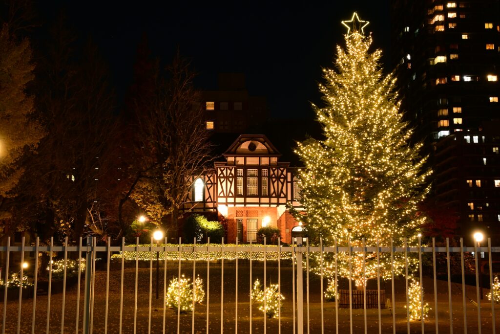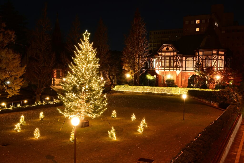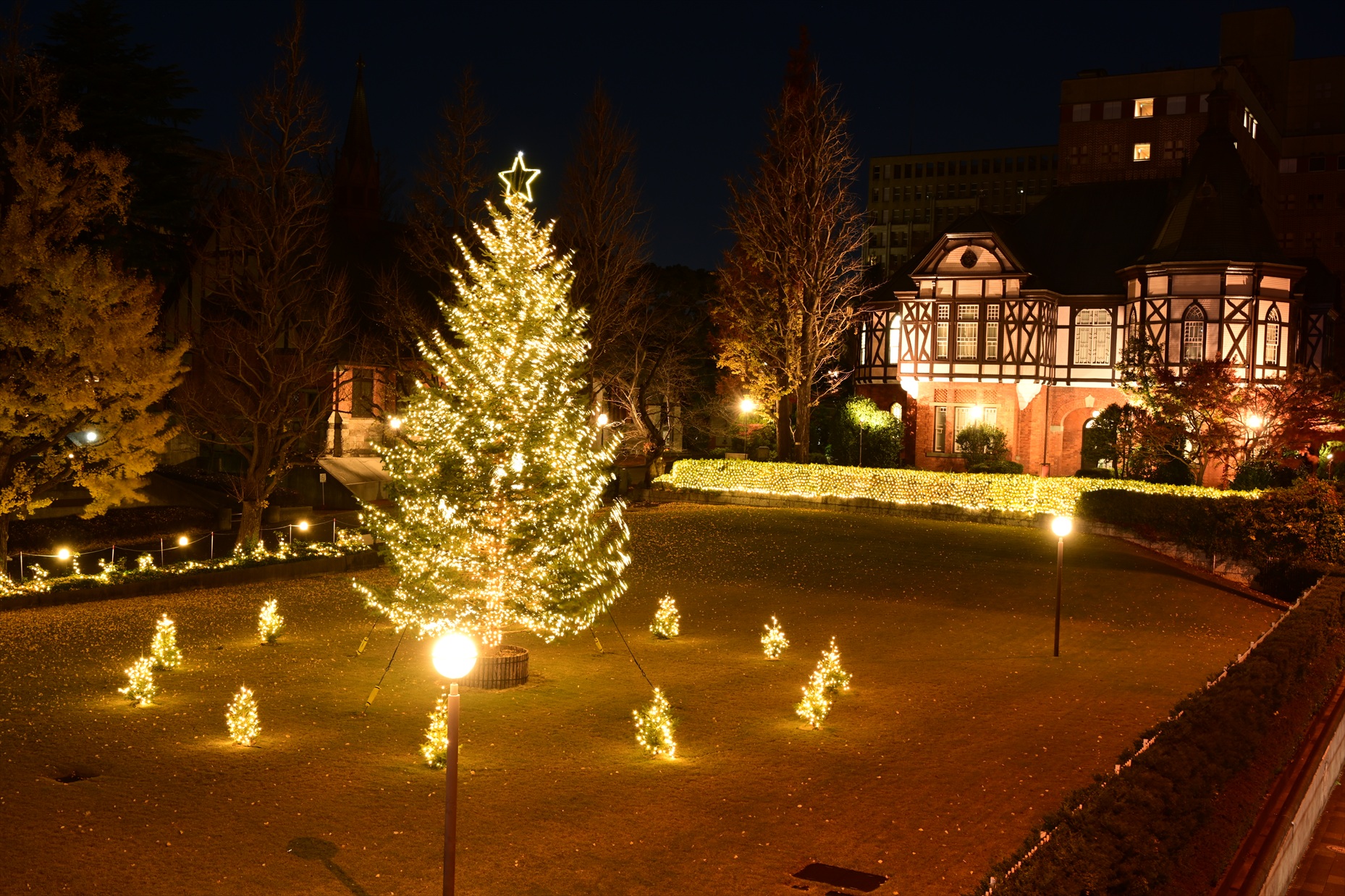 明治学院はローマ字で知られるヘボン氏が建てた大学で、生麦事件で薩摩藩士に襲撃されたイギリス人を治療したというエピソードもある。ミッション系の大学なので、クリスマスのライトアップはなかなか気合が入っている。