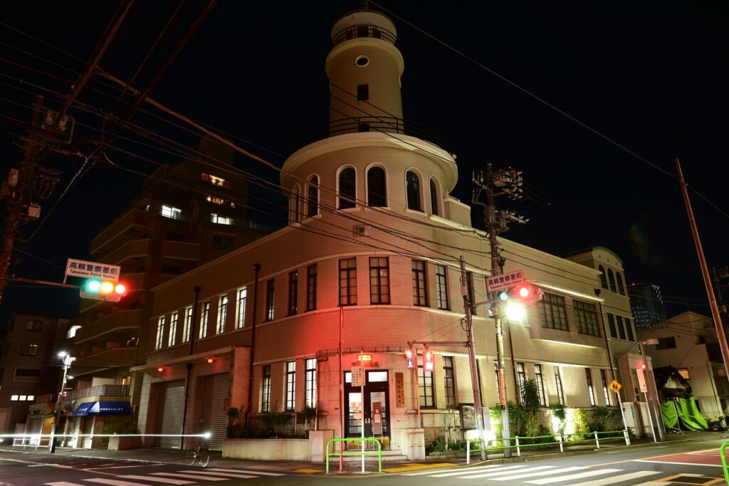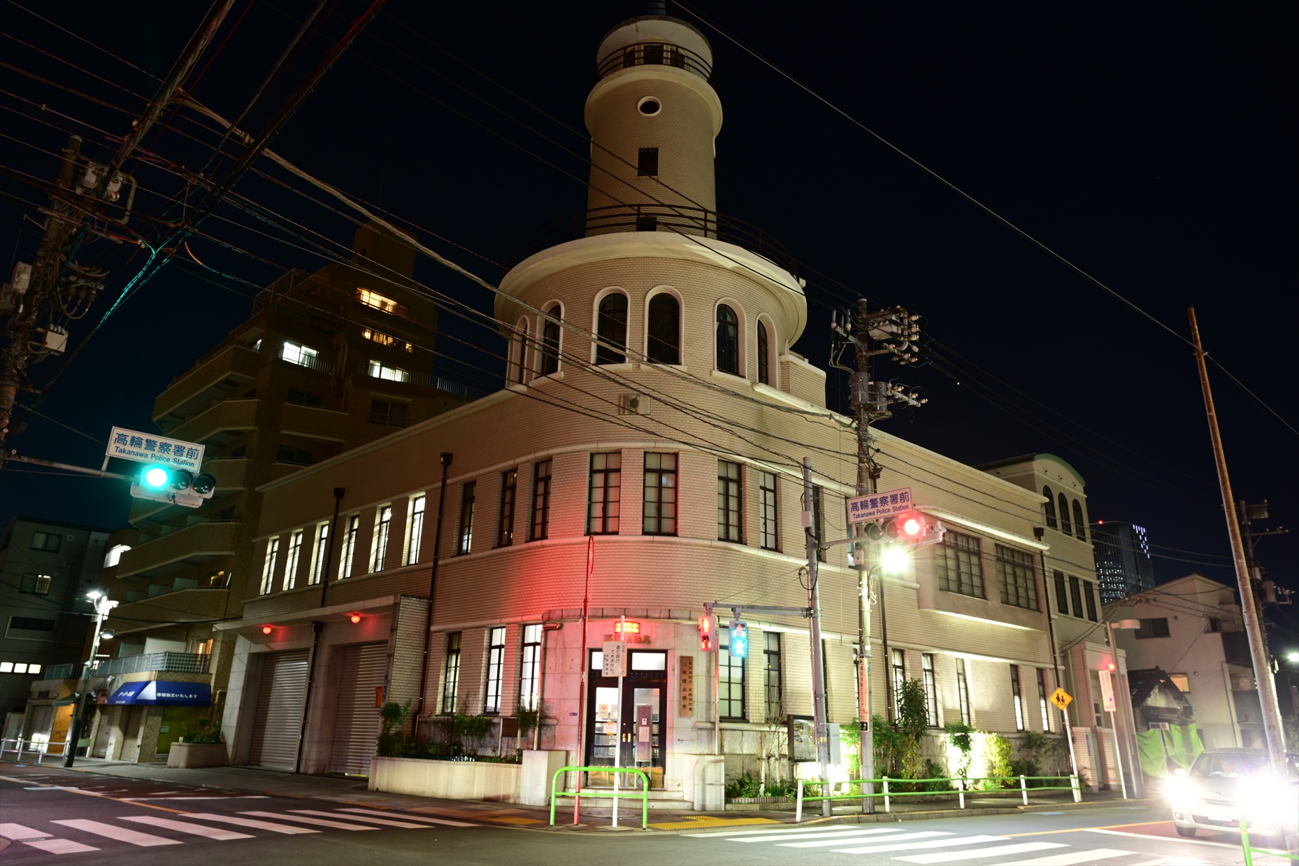 この明治学院前の交差点を左折すると桂坂でそこには高輪警察署と消防署出張所がある。この出張所はなかなか趣深い。桂坂を下りると国道15号線に出て近傍には高輪ゲートウェイ駅がある。