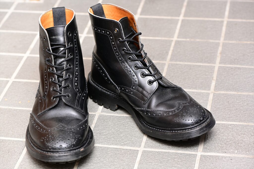 イギリス・ノーザンプトンに工房を構える老舗のシューメーカー、トリッカーズ謹製のカントリーブーツ。このモデルもやはりモールトン(Malton)という。ストウ(Stow)ではない(この説明何回目だろう‥‥)