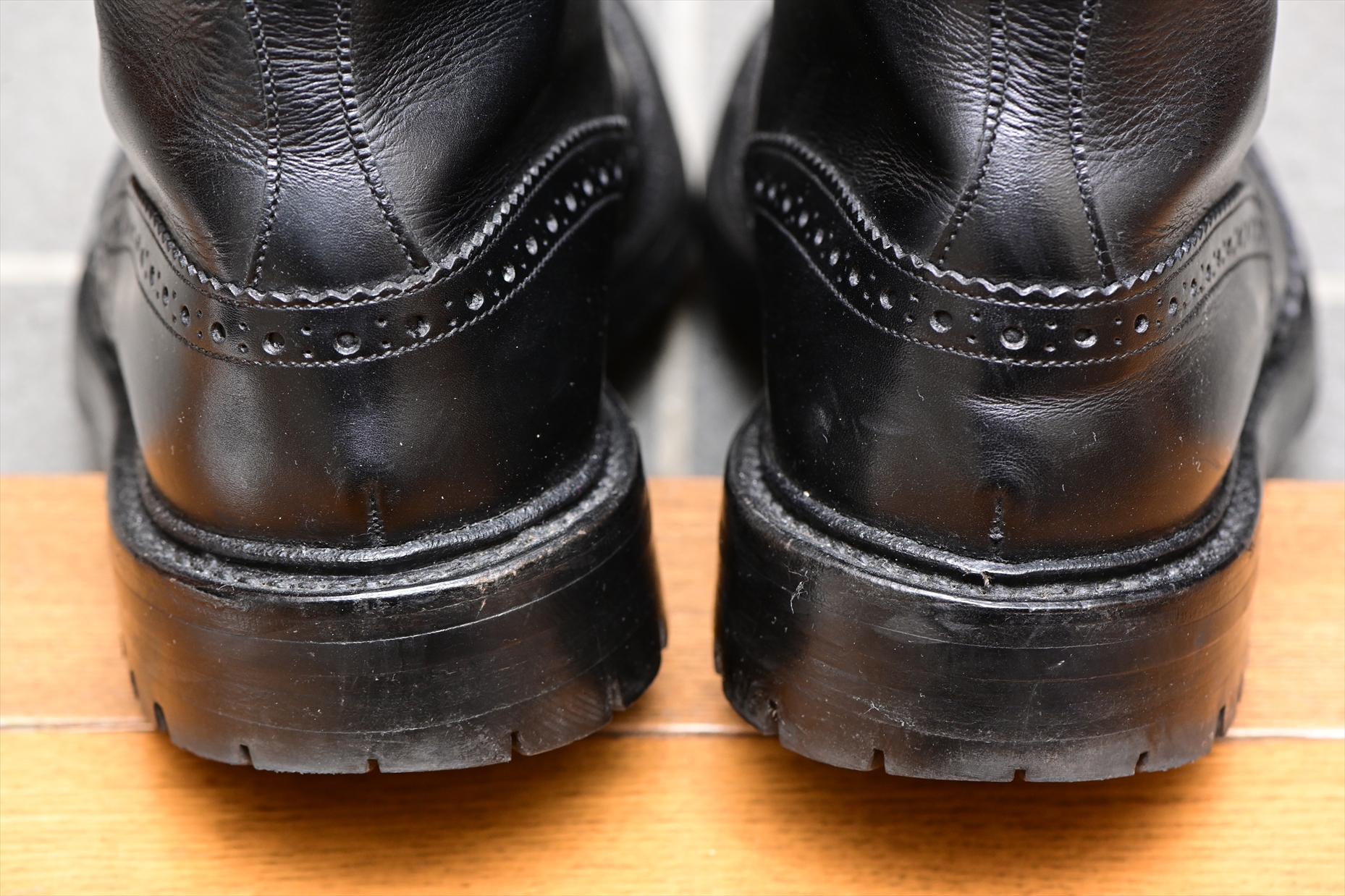 今回は原点回帰?ということでブラックのモデルとなる。同じくブラックのコマンドソールをあつらえられた実用本位の一足。もう買うまいと思っていたのだが、極美品がお値打ち価格(2.3k)で出品されていたため欲望に負けて保護してしまった一足。