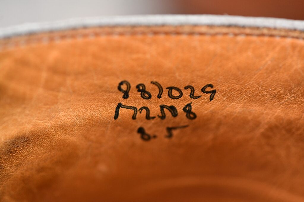 作られてから少なくとも四半世紀経過しているものと思われるが、ポリウレタンなどの経年劣化する素材を使っていない昔ながらの製法だからこそ可能な芸当といえる。もっともそれなりに古い靴ではあるので大事に履きたい。