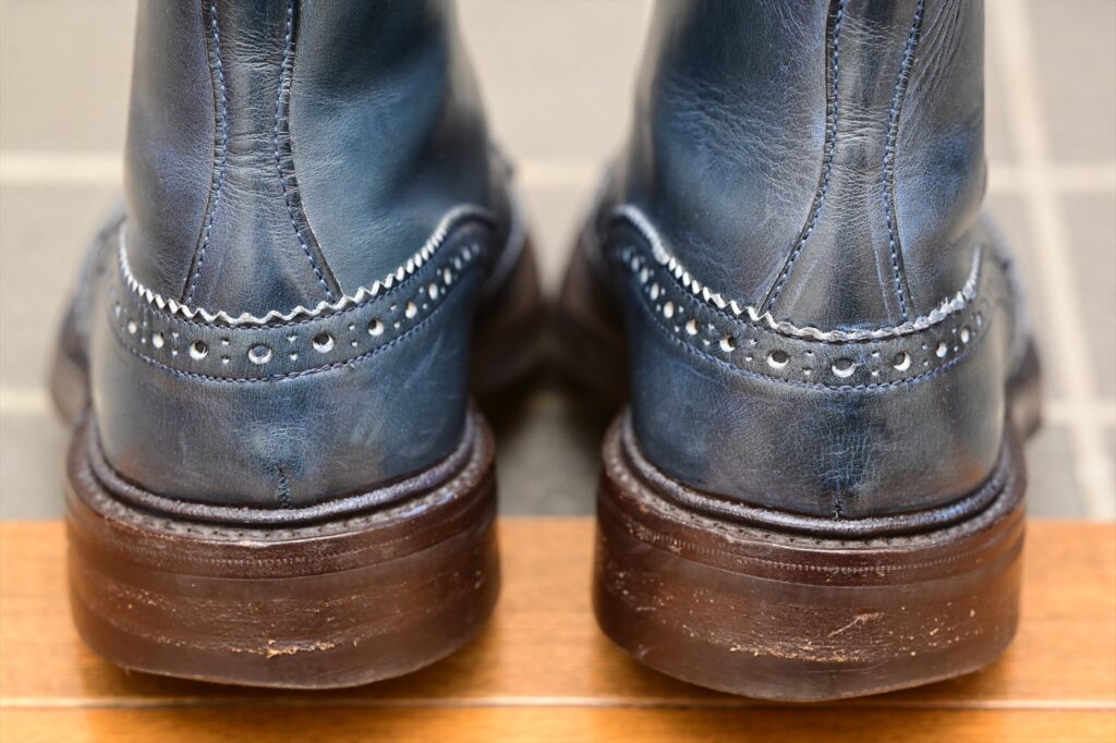 多少ヴァンプにシワが入っていて履き込まれている感はあるものの、青い靴はそれ自体かなり珍しいので満足感はある。