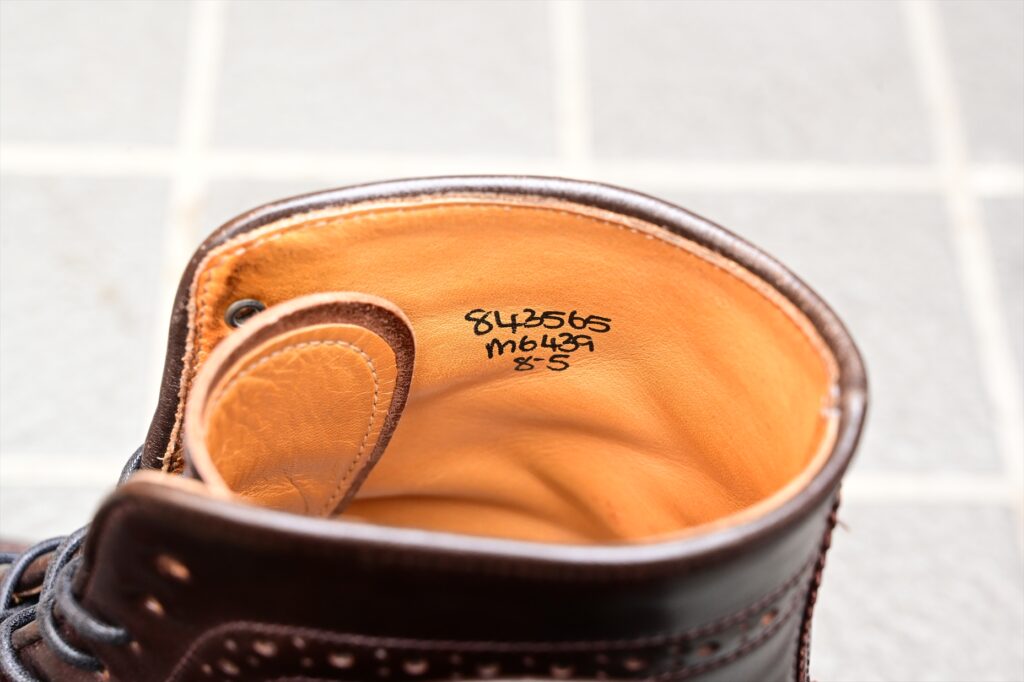この靴はの型番はM6439で、製造番号は843565、サイズは8でフィッティングは5らしい。サイズはUKかUSかはわからない。