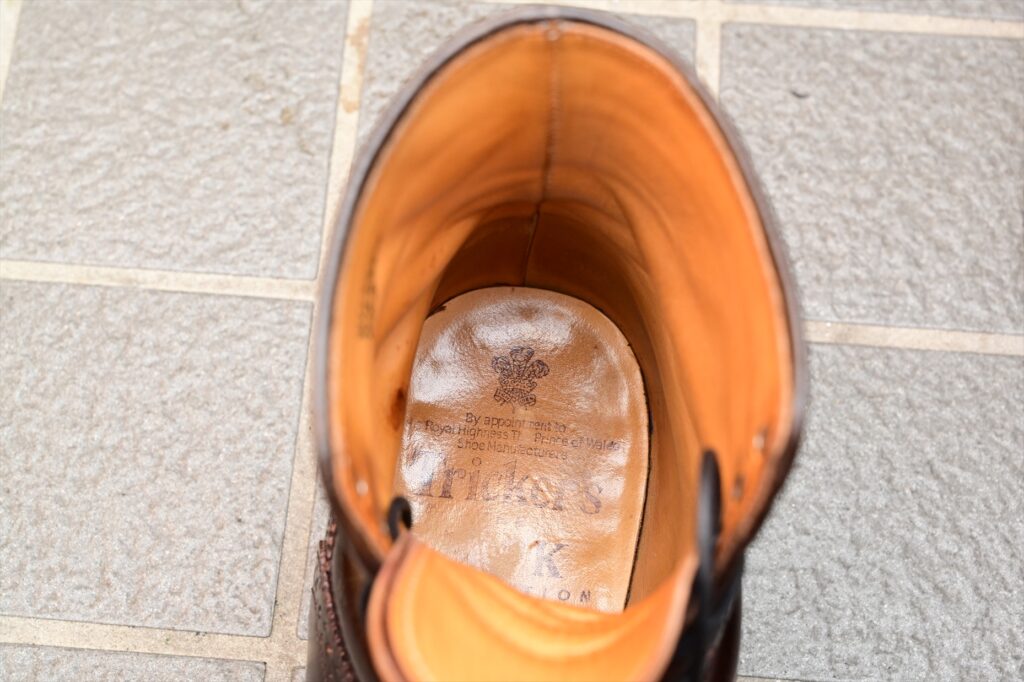 トリッカーズの一足でジャックコレクションというラインらしい。通常の定番ラインに比べて変わった仕様の靴が多いとのことで、この一足も少々珍しい仕様になっている。