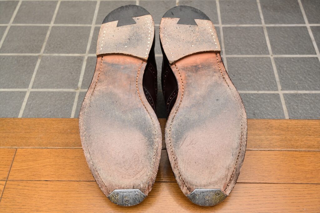 ソールはレザーソールになる。耐水性がないので雨は苦手だが、アッパーレザーのコードバンも水に弱いため、仕様としては噛み合っている。見た感じ市場流通品もコードバンにはレザーソールというのが主流のようだ。