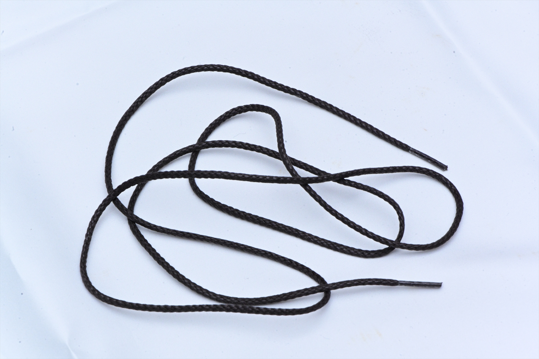 これではあんまりなので細紐でオススメなのはこういうのがある。網目が大きめでほどきにくく、金属セル(メタルチップ)なのでうっかり踏みつぶしても割れにくい。